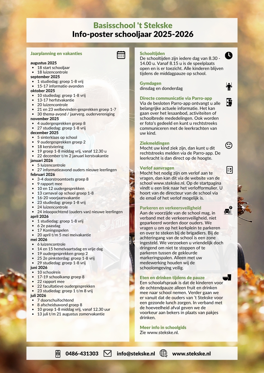 Hieronder vindt u in het kort de belangrijke informatie voor het schooljaar 2025-2026.